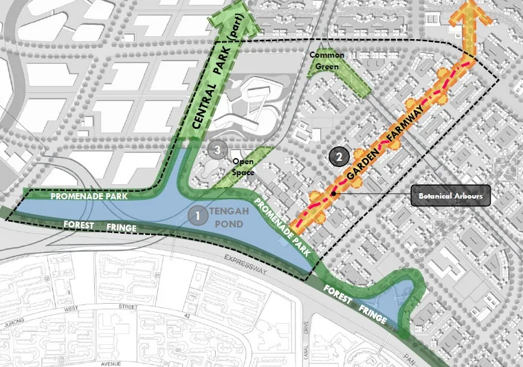 Residents of Tengah Garden can enjoy a vibrant lifestyle centred around nature, convenience, and community living. The development is fronting Tengah Pond, a picturesque waterfront park ideal for morning walks and evening relaxation, while the Promenade Park offers a green connector linking directly to Tengah Central Park. With retail and dining options at the ground floor, daily essentials and casual eateries are just steps away. Nearby hubs such as Jurong Point, Westgate, and JEM provide extensive shopping, dining, and entertainment choices, completing a well-balanced lifestyle that blends urban convenience with tranquil green living.